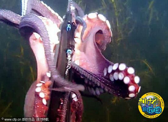 摄像师潜水时摄像机被章鱼抢走 来源: 蜘蛛网 时间:2010年4月30日 11:14 章鱼缠住摄像设备 章鱼对摄像设备很感兴趣 2010年4月28日消息,来自旧金山的摄像师Victor Huang日前在新西兰惠灵顿附近进行潜水时,突然遭到一只章鱼的袭击,摄像机也被抢走。在追逐了五分钟后,Victor Huang终于将自己的摄像机从章鱼那里夺回。 China Foto Press 上一篇 下一篇 TAG: 潜水 章鱼