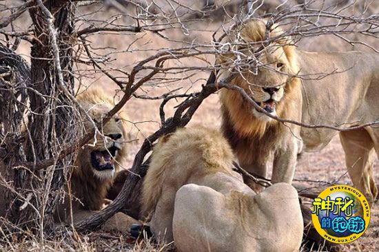 在狮牛大战展开以前,劳森和其他旅游人员一直在跟踪穿越非常灌木丛的这3只狮子。他说:“这座公园里的这3只雄狮非常出名,因为它们彼此配合的相当默契。通常一只雄狮要设法获得一个狮群,并利用它们进行狩猎,而这3只雄狮却像一群单身汉一样联手捕猎。为了争夺小水牛,双方展开了11场进攻,有段时间这些狮子甚至把矛头转向另一只水牛。狮子和水牛来回厮杀,它们似乎都有用不完的力气。听起来情况似乎并不太妙,不过大部分时间我们都认为那只小牛犊还活着,因此牛群会不顾一切地救它。最后一些体型非常大的水牛聚拢来,把狮子赶跑了,不过此时那只小牛犊已经死了。我们的向导表示,它们是牛群中最强的主力军,如果刚开始它们就在这里,那只小牛早就得救了。”
