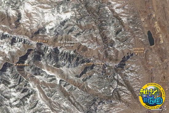2010年3月22日,美国宇航局“地球观测1号”卫星上的先进陆地成像仪捕捉到美国科罗拉多州大汤姆逊峡谷陡峭而贫瘠的地形。卫星图片揭示了发生于1976年的大汤姆逊峡谷一次灾难性山洪暴发的原因。