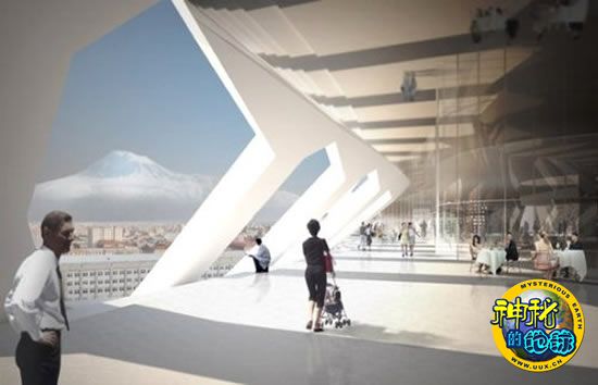 在生态山顶部的大洞起到天窗的作用,可以让光线进入生态山内部。生态山内部的热空气不断上升,并从顶部排走,而冷空气从底部不断进入。Lace Hill位于亚美尼亚共和国首都埃里温,这将是一座天然的美景,和自然融为一体。生态山内部,旅馆和公寓位于南面,可以接受最好的阳光和观看到最好的景色。零售商店和饭店位于较低楼层,而办公区位于北面,非常适合于办公。生态山的建筑设计灵感来自亚美尼亚花边刺绣传统,顶上的洞可以作为生态山内部的天窗。生态山的侧面看起来呈土丘形状,这项设计的目的是为人们提供一个具有多用途的建筑项目。