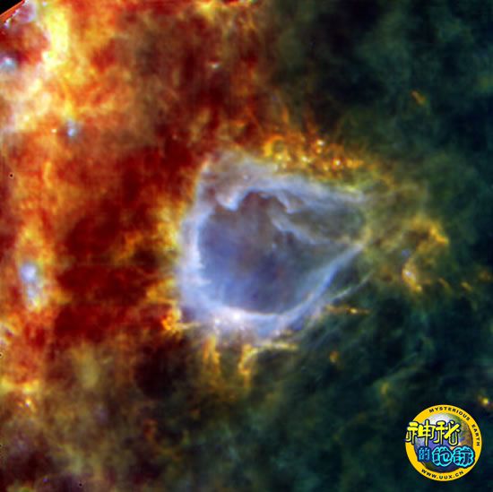 赫歇尔空间天文台公布的星际尘埃云RCW 120图像,在星际尘埃云中发现奇异的太空水蒸气。