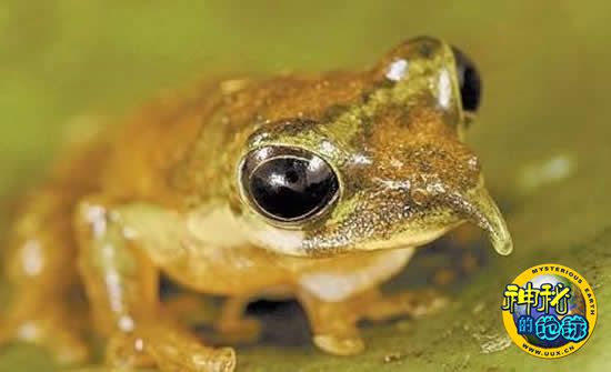 爬虫学家奥利佛发现的一种长鼻树蛙,这种蛙的鼻子在鸣叫时会朝上,活动力较弱时就往下垂,很像小木偶的鼻子,因此被昵称为“匹诺曹”(Pinocchio)。