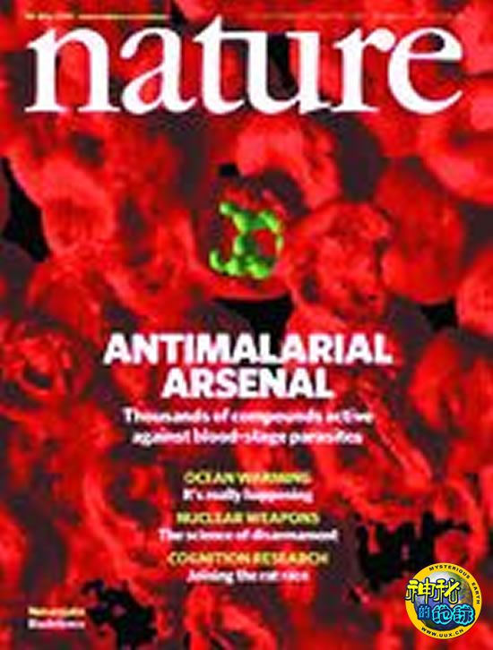 现在每年仍有近2.5亿疟疾病例见诸报道,死亡人数超过80万,其中大多数死亡者是5岁以下儿童。疟疾寄生虫镰刀形疟原虫以精于产生抗药性而著称,所以迫切需要新药。本期Nature上的两篇研究报告让我们看到了这样的希望:通过识别数以千计能够抑制红细胞中无性阶段镰刀形疟原虫生长的化合物,也许可以找到青蒿素的替代药物,它们很多在结构和机制上都与目前的药物截然不同。Guiguemde等人发表了对超过30万种化合物的一个化学基因组筛选结果:共有1300种有疗效,其中561种具有很强药效和广谱治疗作用。Gamo等人筛选了来自葛兰素史克公司化学药品数据库的近200万种药物,发现超过13500种有疗效,其中很多对抗多种药物的分离体都有活性。这些研究提供了丰富的潜在线索,从事抗疟疾新药研究的学术机构及企业的实验室都可以免费获取。本期封面刊登的“三维等值面”所示为红细胞中镰刀形疟原虫裂殖子感染。