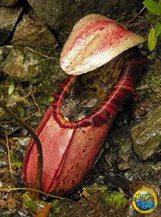 食肉植物捕食 来源: 蜘蛛网 时间:2010年5月24日 14:52 目前我们所知道的“食肉”植物超过400种,它们的亲缘关系可能甚远。这些植物的共性就是它们都能捕取昆虫或其他小动物,并靠消化酶或细菌作用将其分解、消化。 这株植物在吃小虫 捕蝇草是一种特别有趣的“食肉”植物,它长有一些形似贝壳的捕虫夹,且分泌蜜汁,能将闯入的小虫夹住,并消化吸收。 猎物被“锁”在夹中,不能逃脱。 巨大猪笼草 这是一种能够吞噬老鼠的巨大猪笼草,发现于菲律宾中部,被命名为Nepenthes Attenboroughii(以著名博物学家David Attenborough来命名)。 123456下一页 上一篇 下一篇 TAG: 捕食 植物