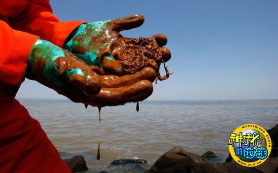 墨西哥湾生态灾难 来源: 蜘蛛网 时间:2010年5月26日 17:11 2.滴落的原油 滴落的原油(图片来源:Photograph by Hans Deryk, Reuters) 在这张照片中,原油与淤泥混合物从保罗-霍斯曼的橡胶手套上滴落,这位海洋生物学家上周对密西西比河口附近表面覆满原油的海岸进行了实地勘察。据美国路易斯安那州立大学海岸研究中心主任格里戈里-斯通(Gregory Stone)介绍,一旦原油沉淀于海岸沉积物中,就会在那里停留数十年。斯通曾在5月初举例说,在密西西比河岸,大量小块浮油被冲上岸,研究人员发现积聚在那里的原油厚度达20英尺(约合6米)。 上一页12345下一页 上一篇 下一篇