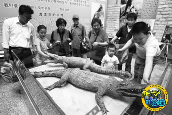 两个鳄鱼标本让众多市民驻足