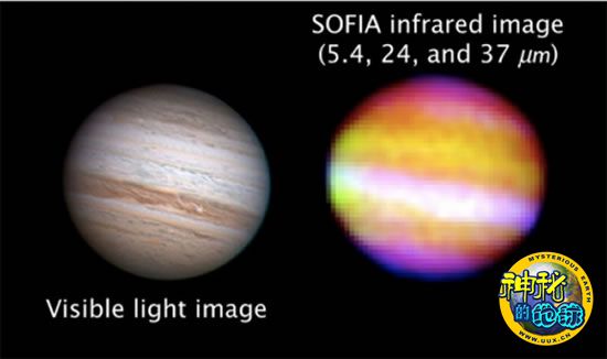 在这个高度,高温层红外线天文观测站可以接受80%的红外射线。负责该天文站的高级顾问克里·贝克林说:“在飞机上的科学家正在记录天文观测站所拍摄的照片时,意外的发现了一个其它望远镜无法观测到的波长,这非常令人激动。来自AOFIA合成的照片显示,通过木星内部云层的一个洞,有热量涌出。”