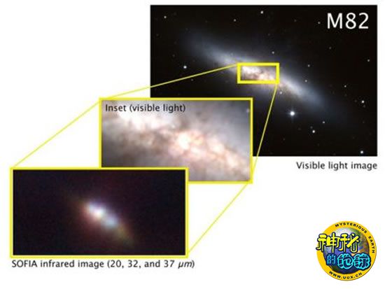 另外,AOFIA还抓拍到了M82(下图所示)的中心,离银河系1200万光年。