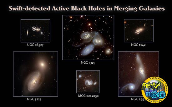 研究团队发现,爆发警报望远镜所发现的星系,大约有四分之一正在合并或形成了紧密的双子星系。科斯认为,“‘雨燕’卫星爆发警报望远镜高透力X射线探测项目让我们对活动星系核有了完全不同的认识。在这些星系中,大约有60%将会在未来十亿年中完全合并。我们认为,我们已经发现了理论家此前预测的由合并所引发的活动星系核的确凿证据。”