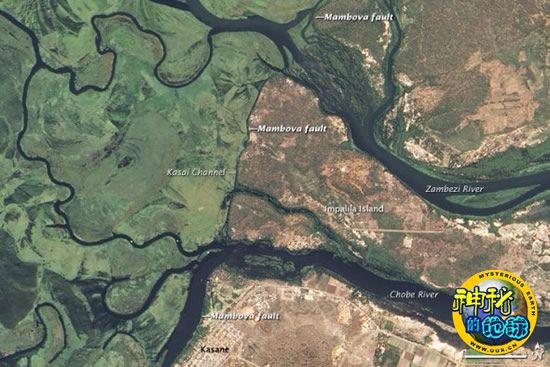 泛滥平原的东部边缘被Mambova断层带包围,使东部地区的土地升高。赞比西河和乔贝河跨过断层切断了横亘在面前的沟渠,但是泛滥平原浅滩地区还是低于东部高地。两河之间的三角地带和断层带形成了Impalila岛。洪水泛滥时,一条名叫Kasai的水渠刚好把断层带两端的河流连接起来。