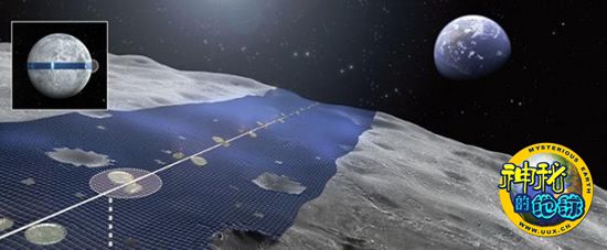该计划涉及围绕月球6800英里(约合1.1万公里)长的赤道建一条太阳能发电带