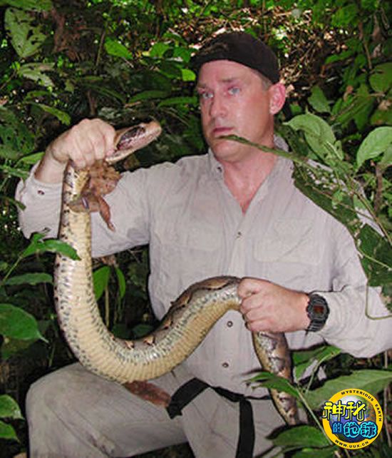 最后一天他们尝试了新的策略——寻找洞穴。看能不能找到蛇的踪迹,要是有的话,看能不能把它从洞里挖出来。他们绕着湖划船。突然,有东西在动,他们发现了一条大尾巴,布拉迪抓住了这条大非洲蟒的尾巴,它正准备钻进洞去,要是再过几秒钟,可能就太迟了。布拉迪和同伴5个人用了20分钟才把大蛇拉了出来。巨蟒在弹舌头,它累坏了。研究人员开始测量蟒的长度,得到的结果是403厘米,刚刚超过4米。这13英尺的蛇,对任何人来说都是大蛇,但更可怕的是这种蛇至少还能再长两倍。而布拉迪认为这还不会是这里最大的蛇。但不管怎么说,他们的努力得到了回报,纪录了一条大蛇的信息。傍晚他们把巨蟒放生了。