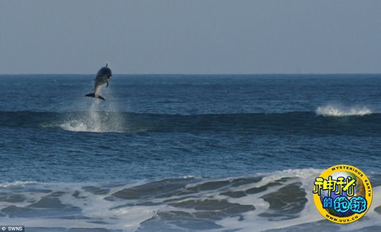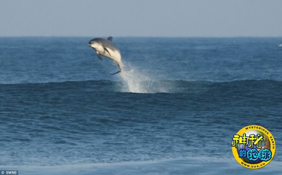 爱玩的海豚表演的水中跳高让冲浪爱好者汗颜。专家们表示海豚很喜欢与人类互动