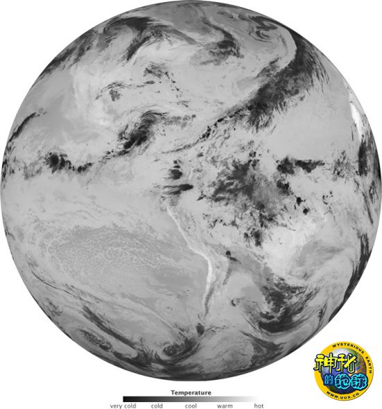据美国宇航局官网报道,2010年5月30日,美国地球同步轨道环境卫星绘制了西半球的热能分布图,图片阐明全球气候变化与云层变化之间的关系。