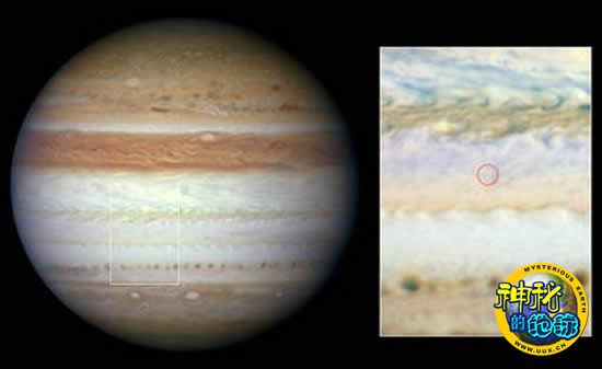 天文学家利用哈勃天文望远镜在六月三日观测到一颗神秘的火球坠入到木星的大气层中,继而在木星的云层高处猛烈的燃烧起来。据天文学家认定,这颗火球为一颗巨大的流星。加州大学研究小组表示,由于流行的光芒非常明亮耀眼,想抓拍一张详细的图像是非常困难的。