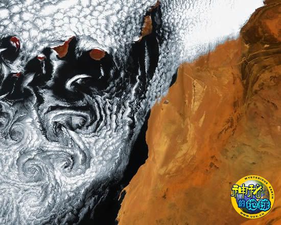 美国国家地理一周太空图片精选:“隼鸟”号返回地球 来源: 蜘蛛网 时间:2010年6月19日 13:04 5.奇异云团 奇异云团 如图所示,我们可以在加那利群岛以南、非洲西北海岸附近看到所谓的“冯-卡门旋涡”。冯-卡门旋涡其实是一种外形奇异的云团,当空气从障碍物(这种情况下是加那利群岛)周围流过的时候,就形成了这种奇异现象。 新浪环球地理(孝文) 上一页12345 上一篇 下一篇