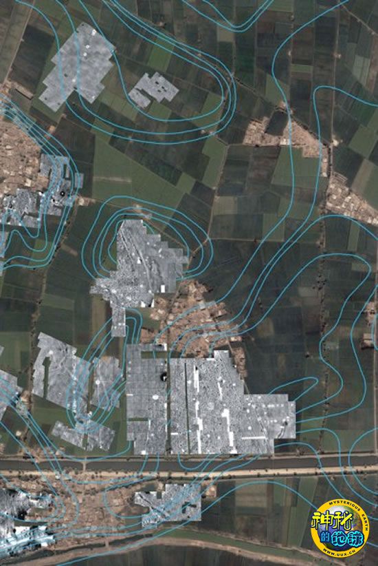 利用雷达扫描得到的彩色卫星图,显示了被埋在大巴堆下的街道、住宅和神殿的清晰轮廓。