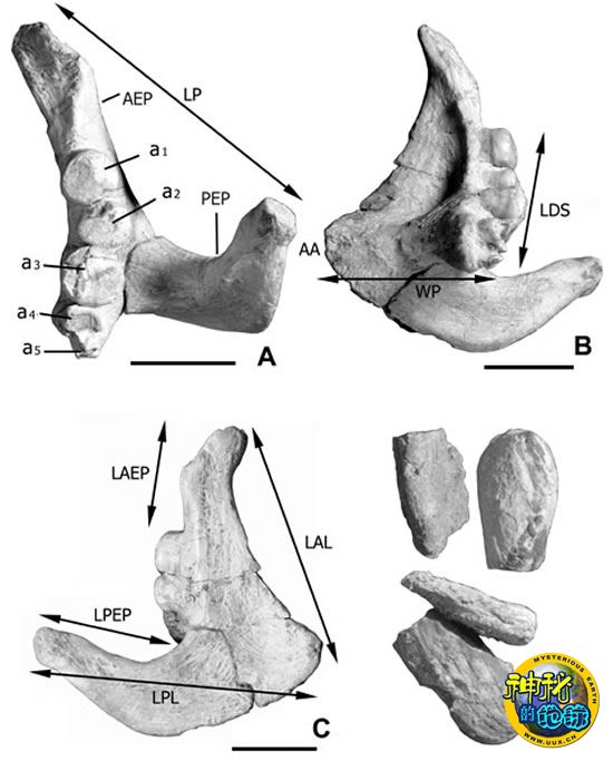 北美《古脊椎动物学杂志》近期发表了中国科学院古脊椎动物与古人类研究所陈平富博士和美国堪萨斯大学Gloria Arratia 博士描述的已知最早的青鱼化石—伍氏青鱼(Mylopharyngodon wui, sp. nov.)。伍氏青鱼为一完整的带有咽齿的右咽骨,产自内蒙古苏尼特右旗查干诺尔碱厂东北23km处(113°07’06.1’’E, 43°24’53.4’’N)的中中新统灰黄色砂岩层内。化石产地上第三系岩层露头好,上、下为一套以红色为主的砂泥岩,中间为一灰黄色的砂岩,与青鱼标本同层位产有丰富的瓣鳃类化石。据上、下红层中含有丰富的小哺乳动物化石,推测年代为中中新世。因此,该标本是迄今发现地质年代最早的青鱼化石,为鲤科鱼类的演化和地理分布提供了新的资料。