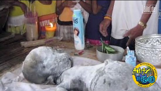 泰国村民祭拜外星人尸体? 来源: 蜘蛛网 时间:2010年6月29日 16:24 泰国村民祭拜外星人尸体? 泰国村民祭拜外星人尸体? 泰国村民祭拜外星人尸体? 泰国村民祭拜外星人尸体? 据德国《图片报》6月28日报道,近日,一个令人震惊的视频在互联网上引发争论。在泰国一个村庄里,人们将寺庙用鲜花装扮起来,寺庙的祭坛上躺着一具神秘生物的尸体。 看起来,它既不像人类,也不像动物。难道是泰国村民正在祭拜外星人的尸体?有一些专家相信,这具尸体属于一种未知的地外生命,被这些村民们当成了神灵。 国际在线(Zak) 上一篇 下一篇 TAG: 尸体 泰国 外星人