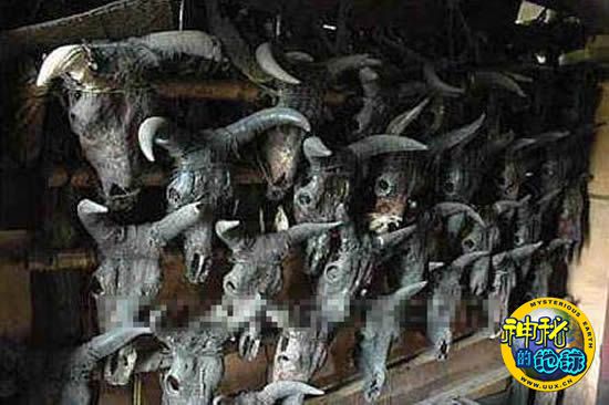 億人首领的厨房壁饰,一个个的野牛头都是打猎的战利品
