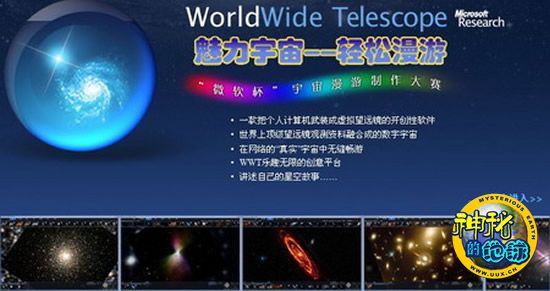 微软公司研发的虚拟天文望远镜技术为这一课题提供了完美的解决方案。它集合了包括哈勃空间望远镜,美国宇航局在内的世界上最好的地面和空间望远镜及天文台的观测数据,通过微软先进的视觉体验引擎,为用户提供了一个操作简单但内容丰富的交互式知识共享和学习环境,用户不仅可以平移或缩放星空,而且可以结合网络上的影片、数据及报道,融合打造出一个丰富的数字宇宙。