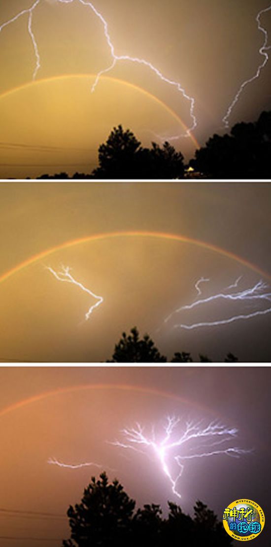 吉隆坡夜空中出现闪电穿越彩虹的奇观 来源: 蜘蛛网 时间:2010年7月03日 10:15 吉隆坡夜空中出现闪电穿越彩虹的奇观 据英国媒体报道,7月1日傍晚,马来西亚首都吉隆坡上空出现闪电穿越彩虹的奇幻景象。彩虹通常是由空气中的水滴折射太阳光,将白色太阳光折射出七种不同色彩的光线而发生的自然现象,而闪电是由带不同电荷的云层相互摩擦而形成的放电自然现象。尽管对于我们来说这两种自然现象单一发生极其平常,但两种自然现象同时发生的情况并不多见。 国际在线(海澜) 上一篇 下一篇 TAG: 彩虹 奇观 闪电