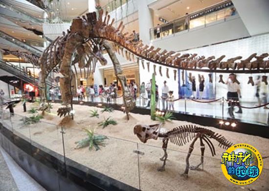 据了解,南京德基广场此次展出的3具恐龙骨架化石、1枚恐龙蛋窝和两枚单独恐龙蛋,全部来自北京自然博物馆。展览的最大亮点是体长26米的井研马门溪龙,它是目前亚洲最长最完整的恐龙,其化石保存率高达85%以上,为珍罕之极品。井研马门溪龙生活在距今1.4亿年前的晚侏罗纪,化石产于我国四川井研县,也是我国特有的恐龙类型。该化石曾在美国、意大利、荷兰、澳洲,中国香港等地展出过,都引起轰动。而小如家猫的中国鹦鹉嘴龙,被称为恐龙家族中的“小不点”,属于白垩纪早期原始角龙类,化石产于山东。另外还有原角龙骨架,生活在8300万年以前的白垩纪晚期,世界最早发现的恐龙蛋就是原角龙产的。此次展出的恐龙蛋窝保留了出土时的自然品相,而2枚恐龙蛋化石外形也各不相同,种类也有区别,品相良好、蛋体完整、机理层次分明。此次展出的恐龙蛋化石就是采自南阳西峡,距今已有7000万年的历史。