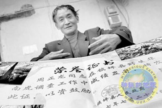 “老虎的头有这么大。”周正龙朝记者比划着,因为在华南虎调查中曾当过向导,县政府发给他一张荣誉证书