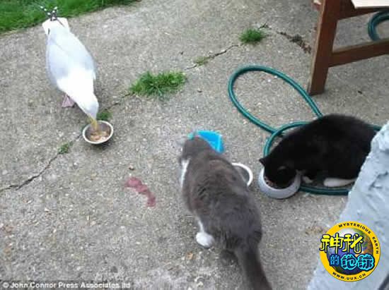 英国一只失足跌落烟囱中的海鸥竟成了猫群的一员。