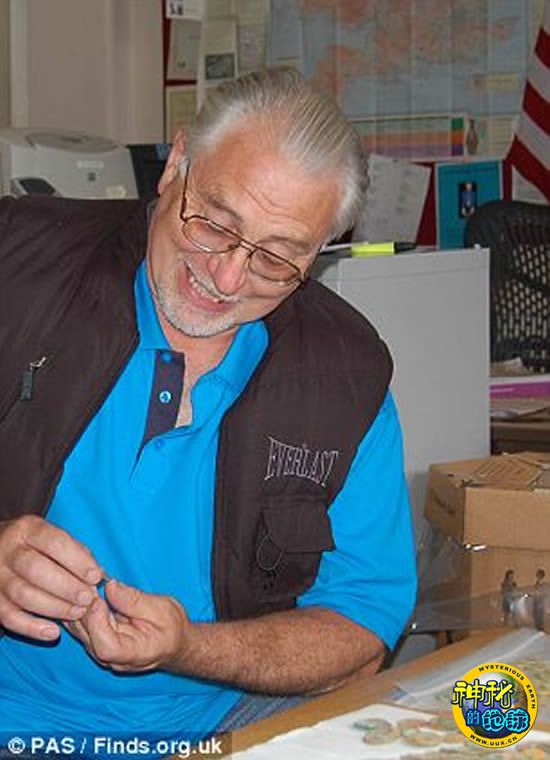 克利斯普在察看自己发现的可追溯至3世纪的52500枚古钱币中的一枚。