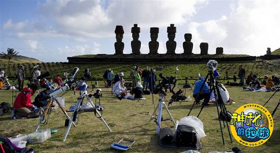 复活岛上,观测日全食的人们。