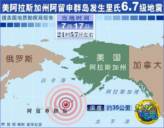 美国阿拉斯加州阿留申群岛发生里氏6.7级地震