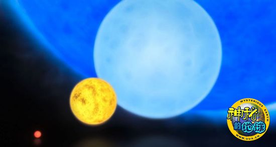 当然存在体积上比这颗恒星大得多的恒星,比如那些发出红色光芒的红巨星,但它们的质量远远不如这颗恒星。红巨星是恒星度过青壮年期的主序星阶段,步入老年期的象征。表现是恒星体积急剧膨胀,表面温度下降,发出红色光芒。