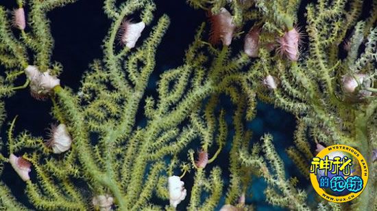 加拿大海底发现的深海新物种 来源: 蜘蛛网 时间:2010年7月29日 10:59 7.海葵附于珊瑚表面 海葵附于珊瑚表面(图片提供:Bedford Institute of Oceanography) 在这张摄于今年7月探险期间的照片中,亮粉色海葵“装饰着”变形角珊瑚的水螅体。海葵是珊瑚的近亲,通常吸附于岩石或珊瑚表面。据美国国家自然历史博物馆专家介绍,海葵有刺一样的触须,能使小猎物陷入瘫痪,最终成为其美食。 上一页123456789下一页 上一篇 下一篇