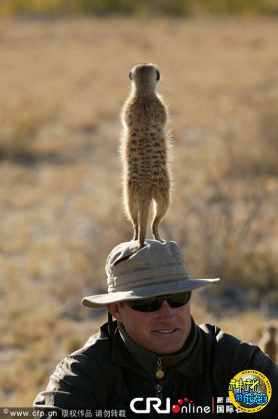 大胆猫鼬把摄影师当"瞭望台"