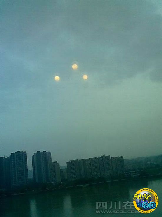 “快看,UFO来啦!”7月26日晚上8点,乐山市民卢山在“翡翠国际”大厦的上空看到了这样一幕:昏暗的天空中突然出现3个不明发光体,将天际照得通亮,持续10多分钟后才集体消失……