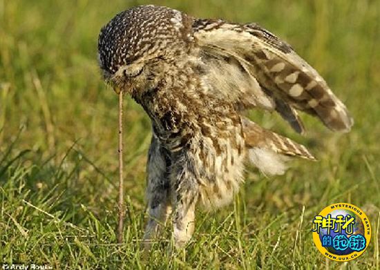 摄影师拍下了英国最小猫头鹰种类——小鸮——捕食蚯蚓的情景。为了养活3个嗷嗷待哺的孩子,这个习惯了昼伏夜出的母亲不得不选择在白天外出觅食。不仅如此,7英寸(约合17厘米)的身长和6盎司(约合170克)的体重,意味着它把食物带回家是多么大的挑战。