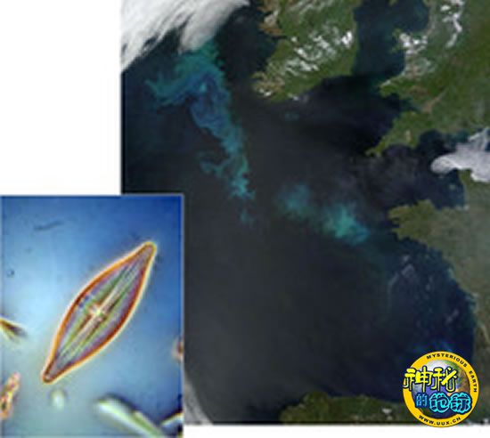 单细胞浮游植物中的叶绿素能够在海洋中形成巨大的绿色污迹。