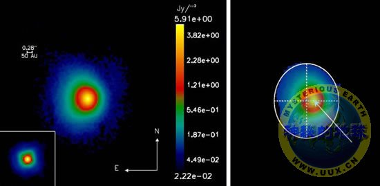 科学家在一个比我们的太阳大2.5倍的恒星周围,发现了一个尘土、碎片和气体的发光盘。天文学家过去不太清楚这样的盘是否能在比太阳大的恒星周围形成。Pierre-Oliver Lavage和同事发现了这个恒星HD 97048周围的发光盘,该恒星位于Chameleon I暗云中,是太阳的2.5倍。他们的发现是用位于欧洲南方天文台的特大望远镜成像仪和光谱仪(VSIR)的中红外段做出的。研究人员提出,该盘的年龄还很短,所以也许能观察到正在演化中的原行星,也许其中有行星正在形成。
