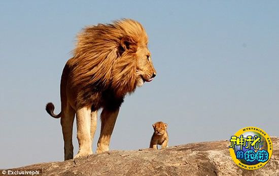 据《每日邮报》报道,近日一位摄影师在非洲汤桑尼亚一片平原中拍摄到这一幕,一只雄壮的公狮站在一处丘陵上,思绪万千地凝视着旁边刚出生不久的小儿子,场景十分像曾经风靡全球的动画片《狮子王》中的感人故事。公狮仿佛在语重心长地对儿子说:“儿子,你身负重任啊!你长大以后也会像父亲一样,成为狮中之王,统领狮群”。