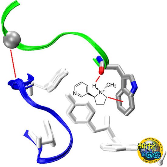 尼古丁安逸地躺在大脑受体“骨架”中