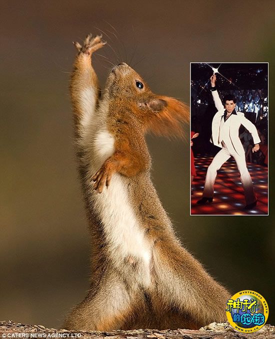 可爱的红松鼠挥舞着自己的小爪子,其夸张的造型让人想起了《周末狂热》中的约翰·屈伏塔。
