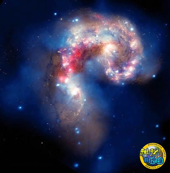 美国国家地理一周精彩太空照片:英仙座流星雨 来源: 蜘蛛网 时间:2010年8月17日 14:12 3.星系剧烈碰撞 星系剧烈碰撞(图片提供:NASA and ESA) 根据钱德拉X射线太空望远镜、“哈勃”太空望远镜和“斯皮策”太空望远镜(红色)所拍照片合成的彩色图,它们分别以蓝色、金色和褐色以及红色显示了星系碰撞的壮观瞬间。这张合成图由美宇航局大天文台(Great Observatories)计划于8月5日公布。这些触角星系距离地球大约6200万光年,得名于像触角一样的“手臂”(由星系相撞产生的潮汐力形成)。这场正在发生的碰撞始于一亿多年前,诱发数百万颗恒星在尘埃和气云中形成。 上一页12345下一页 上一篇 下一篇