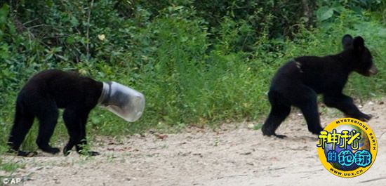 美国黑熊脑袋钻进塑料瓶