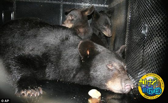 熊妈妈和它的两个幼崽被关在佛罗里达州欧卡拉国家森林附近的一家野生动物保护中心的笼子里。