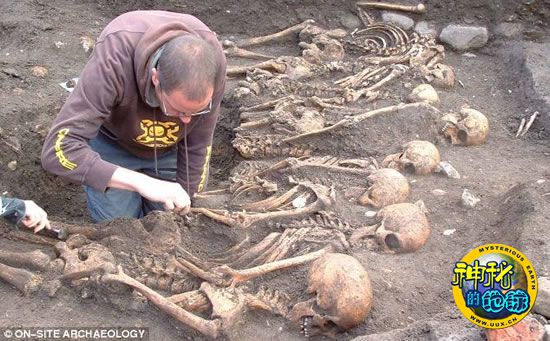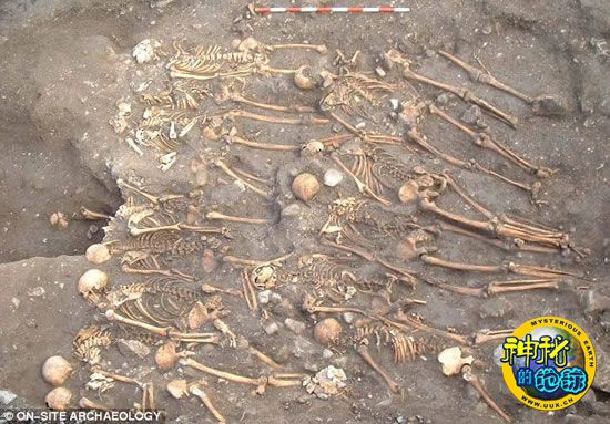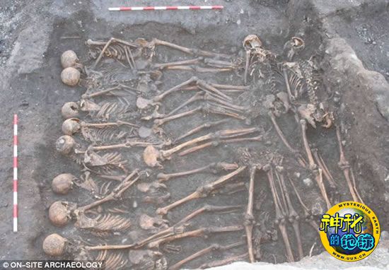 考古学家一共找到113具骸骨,却没有发现任何纽扣或装饰品的残留物,这证明这些人入葬前都被扒光了衣服,他们全部面孔朝下俯卧在墓坑里,一具挨着一具排列得十分拥挤,令人感觉他们死得凄凉而毫无尊严。