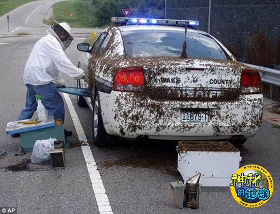 8月17日早晨,北卡罗来纳州附近的一条公路上,一辆运送蜜蜂的卡车发生车祸,导致蜜蜂从开裂的箱子里飞出,当副警长布兰顿-詹金斯接到报警赶到现场时,他惊恐地发现卡车上装满了60箱的蜜蜂。詹金斯的到来显然不合时机:当时太阳刚刚升起后不久,唤醒了沉睡一晚的蜜蜂,它们密密麻麻地围了上来,迫使詹金斯赶紧躲进车里,打电话求救。