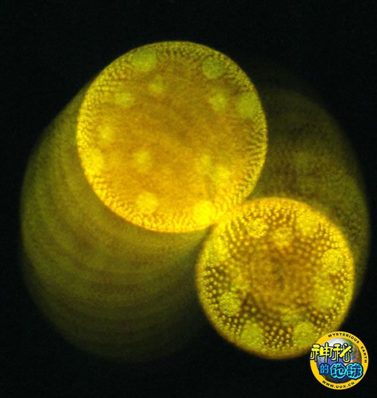 尽管一些团藻细胞是孤独的,而另一些团藻却会组织起来,形成半透明的球形群体,并且在游水的过程中不停地旋转。这些群体由生长在数千单个细胞上的鞭毛掌舵。然而团藻绝非一种仅仅在显微镜下才能够看到的新奇事物——它还是科学家研究多细胞生物如何进化的模型。通过分析藻类群体间的相互作用,研究人员希望能够搞清单个细胞如何实现进化上的飞跃,从而在数亿年前形成多细胞组织。