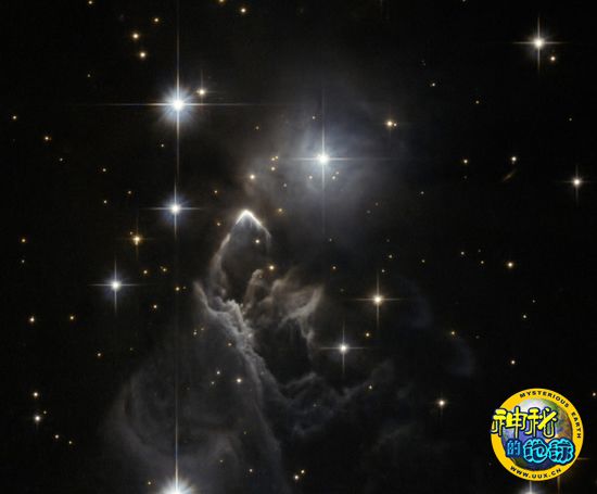 在这张哈勃空间望远镜新近拍摄的图像上,大片的明亮恒星和黑暗的星际尘埃云散布,但最明显的还是一个幽灵般的星云。