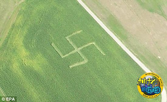 据报道,一位摄影师乘飞机经过德国巴伐利亚州上空时,无意中发现一个玉米田中有一个巨大的“卐”字形纳粹标志,这个由被压倒的玉米形成的标志足有网球场大小。这个发现令早已立法禁止纳粹标志的当地政府十分尴尬。